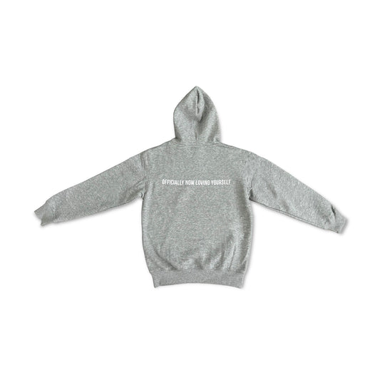 Grey Front Logo Slogan Back Hoodie